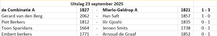 23 sep de Combinatie A - Mierlo-Geldrop A: 1 - 3