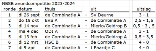 NBSB avondcompetitie 2023-2024.